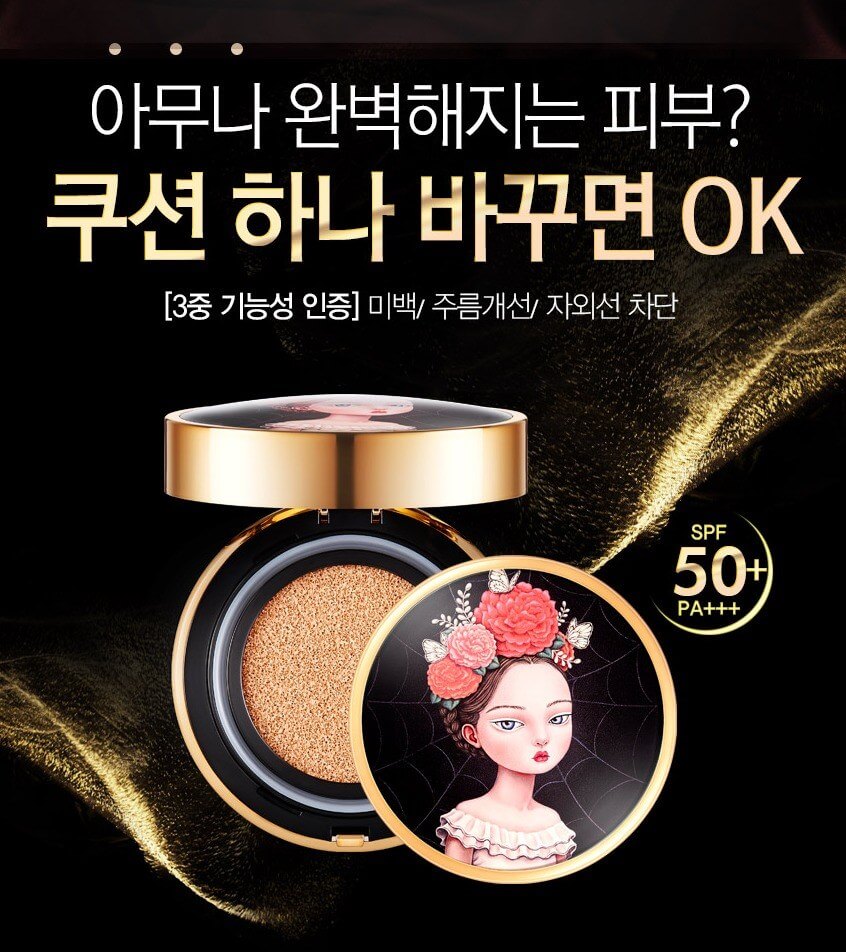 Кушон, делает кожу гладкой, матовой, скрывает все недостатки кожи, маскирует тёмные круги под глазами, гиперпигментацию кожи.