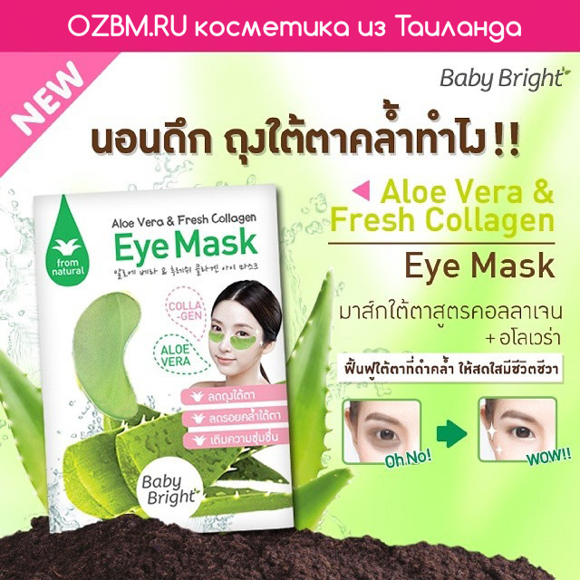 Aloe Vera & Fresh Collagen Eye Mask 1Pair Baby Bright. Thailand