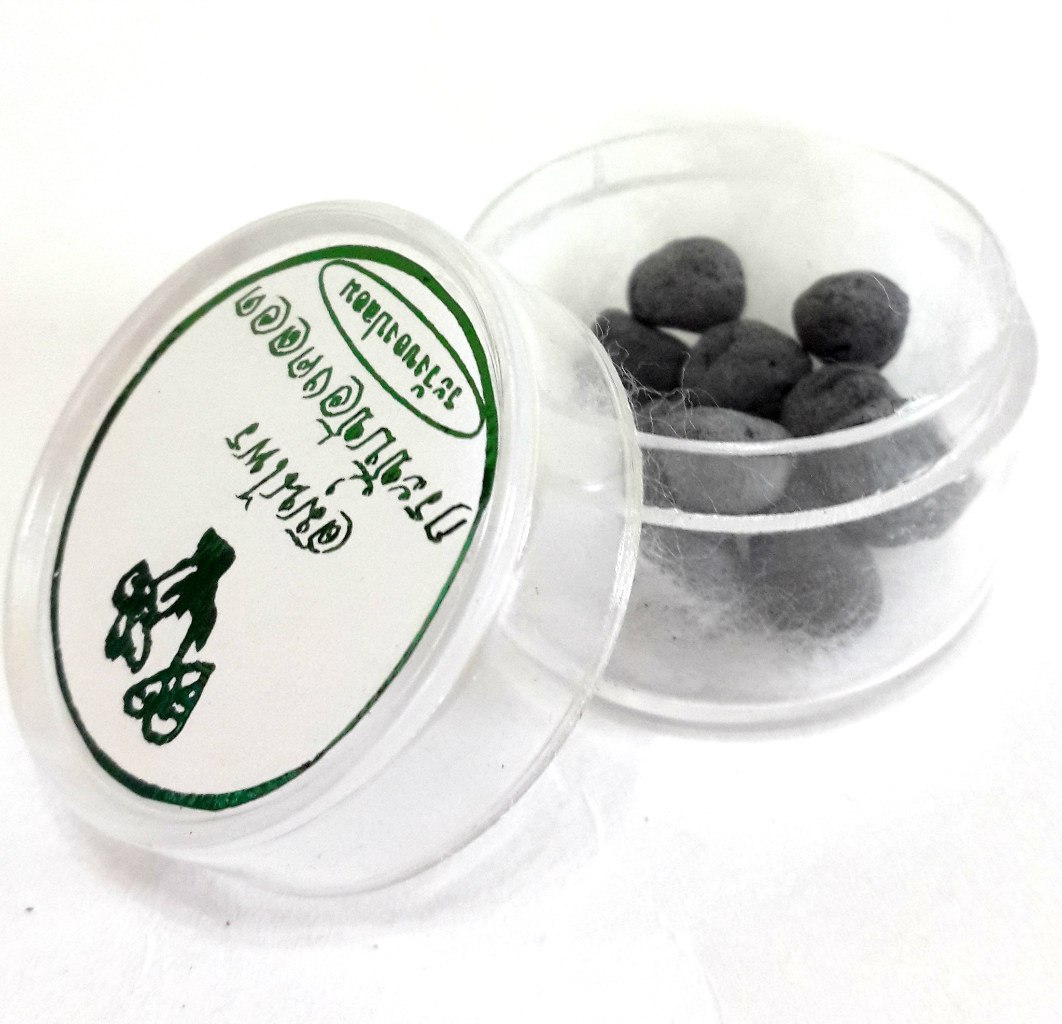 Таблетки Manjakani имеют форму шариков, от 5 до 6 миллиметров в диаметре.